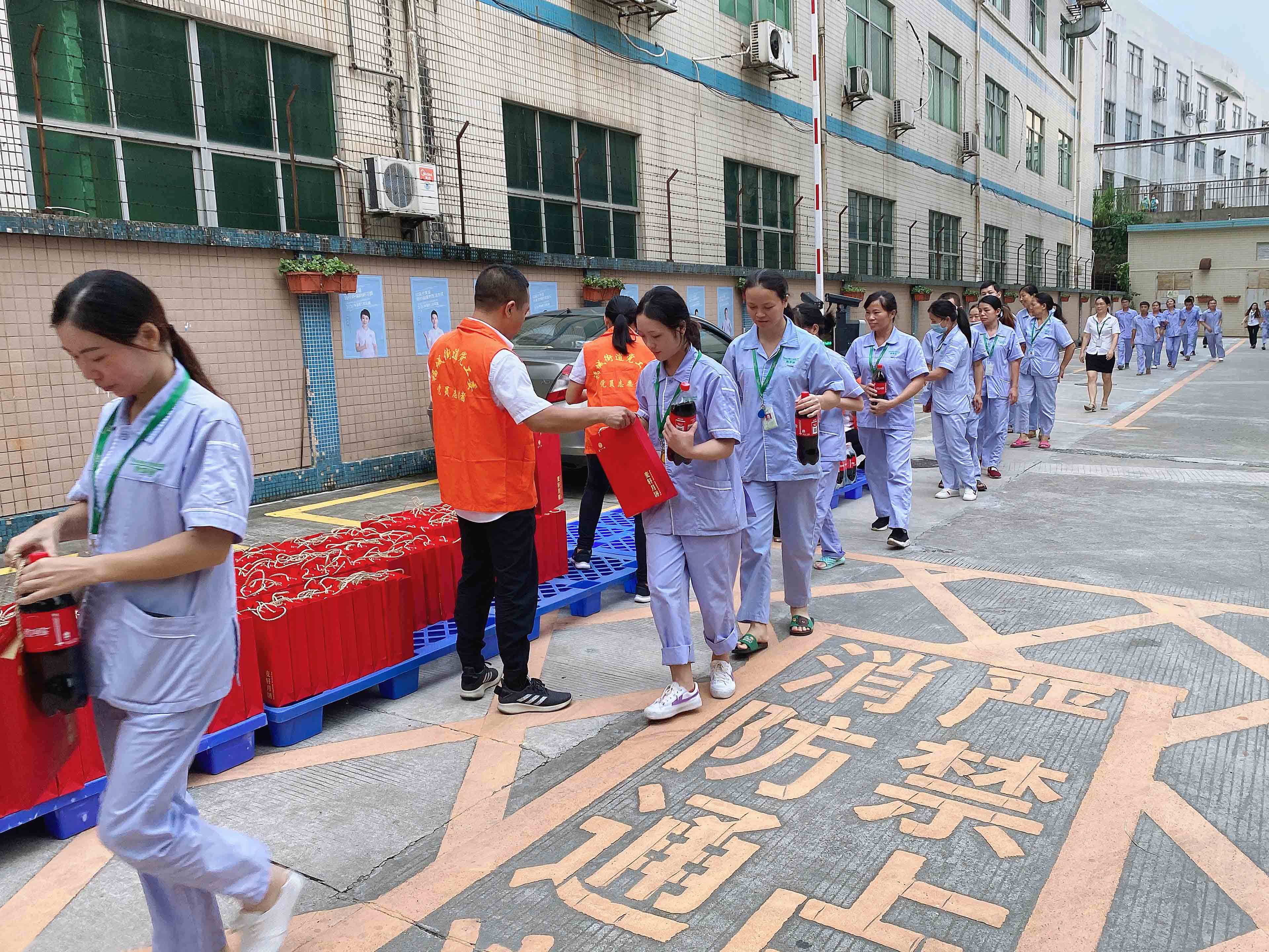 公司行政部門依次給同事們發(fā)放節(jié)日福利~