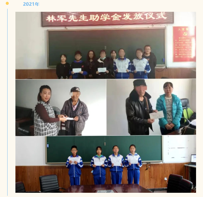 林軍扶困助學(xué)基金是鵬灣公益基金會(huì)理事、雅香麗化妝用品(深圳)有限公司董事長(zhǎng)林軍先生為支持家鄉(xiāng)教育及關(guān)愛(ài)留守兒童而設(shè)立的教育助學(xué)基金。2019年,林軍扶困助學(xué)基金制定了長(zhǎng)達(dá)六年的資助計(jì)劃,并與吉林省和龍市慈善總會(huì)合作,由其對(duì)助學(xué)金的發(fā)放進(jìn)行監(jiān)督與執(zhí)行,在和龍市持續(xù)資助5名學(xué)生,幫助他們完成中小學(xué)階段的學(xué)業(yè)。