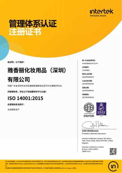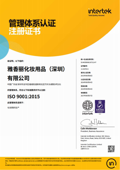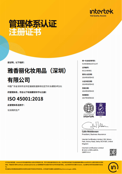 熱烈慶祝雅香麗化妝用品(深圳)有限公司榮獲質(zhì)量、環(huán)境和職業(yè)健康安全管理體系認(rèn)證?。?!