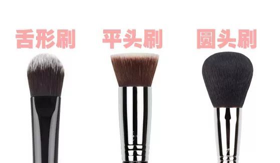 粉底刷通常分為舌形刷、平頭刷、圓頭刷三種。剛剛講過,化妝品有分干性和濕性,而因為粉底大部分是很有水分和油脂的,屬于濕式化妝品,所以使用人造毛的粉底刷會較耐用。